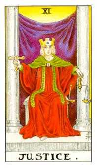 Ši korta yra apie sąžiningumą, teisingumą, dorumą ir karminę pusiausvyrą. Nesvarbu, ar sprendžiate teisinę situaciją, santykių problemą, ar vidinį sąmokslą, Teisingumas sako: „Pirmiausia faktai, o paskui jausmai“. Jei elgėtės sąžiningai, pasitikėkite, kad viskas stos į savo vietas. Jei ne? Na, dabar pats laikas viską ištaisyti.